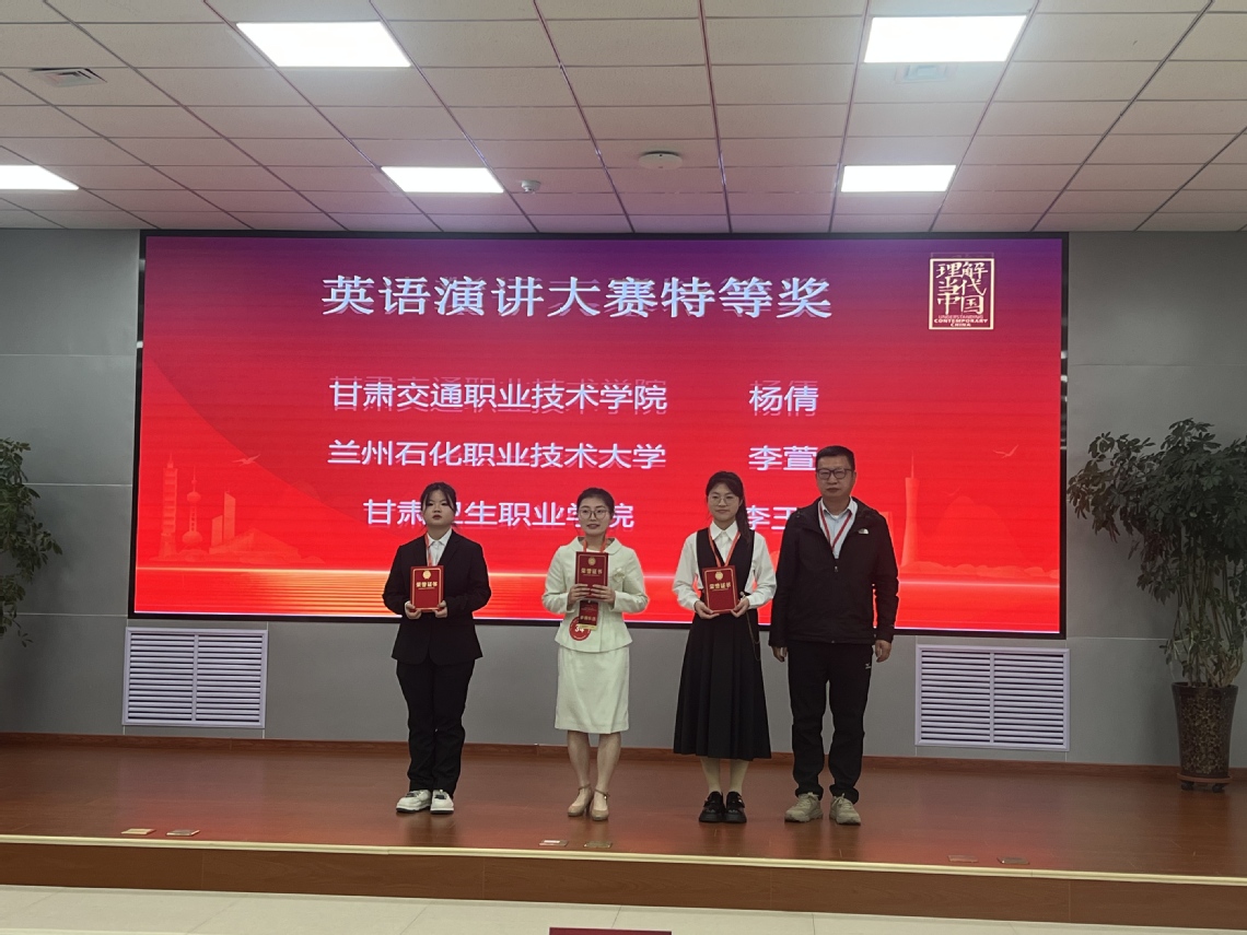 10月26日,2025“外研社・国才杯”“理解当代中国”全国大学生外语能力大赛(高职组)甘肃赛区复赛于甘肃交通职业技术学院圆满落幕。本次赛事汇聚全省13所高职院校的70余名选手,我校选派的6名选手在演讲、写作两个赛项中表现突出,共斩获特等奖3项、一等奖3项,学校荣获“优秀组织奖”。