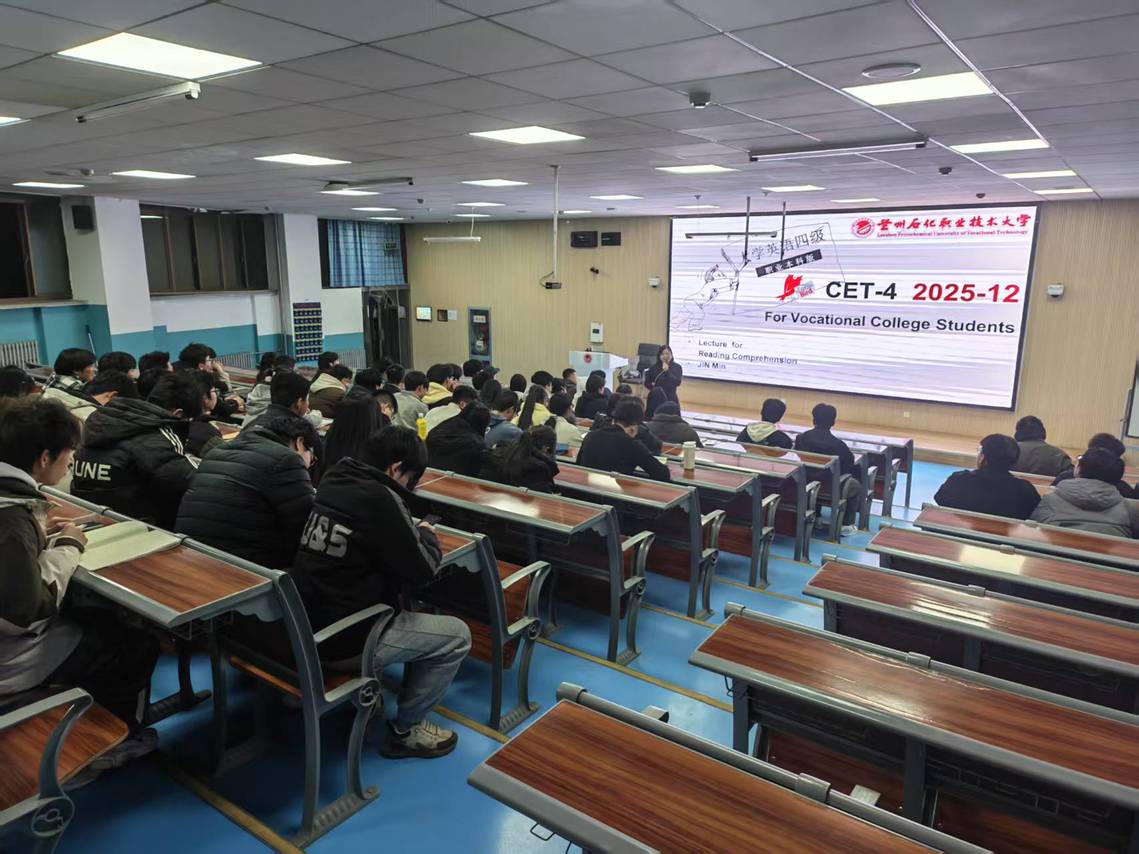 下一步,学院将总结本次辅导经验,探索构建常态化、模块化英语四级辅导,每年定期开展两期义务四级辅导,切实提升全校大学英语四级通过率,推动大学英语教学与专业学习、职业发展深度融合,为培养具备优良国际沟通能力的高素质技术技能人才筑牢语言根基。