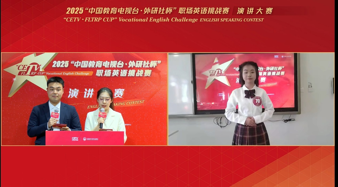 “中国教育电视台・外研社杯”职场英语挑战赛由北京外国语大学主办,中国教育电视台、外语教学与研究出版社联合承办。赛事始终坚守“以赛促学、以赛促教、以赛促改”的核心宗旨,聚焦职教学子语言技能精进与跨文化交际素养提升,为推动中国职业外语教育事业高质量发展、助力高素质职教人才创新培养搭建了优质平台。
